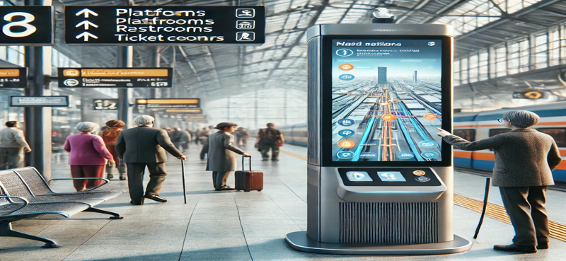 Simply follow the on-screen arrows or listen to audio instructions as you move through the station. Digital kiosks provide clear visual cues, while the mobile app offers real-time updates and notifications.